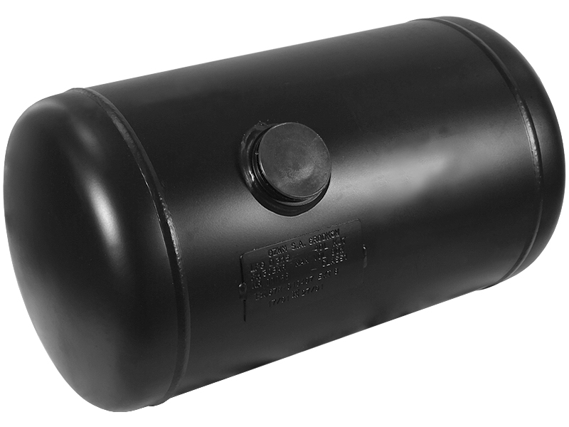 Składowy element instalacji gazowej. Zbiornik walcowy wykonany z materiałów wysokiej jakości, mocowany do ramki montażowej za pomocą opasek, przystosowany do współpracy z wielozaworami o kącie nachylenia 30 stopni.