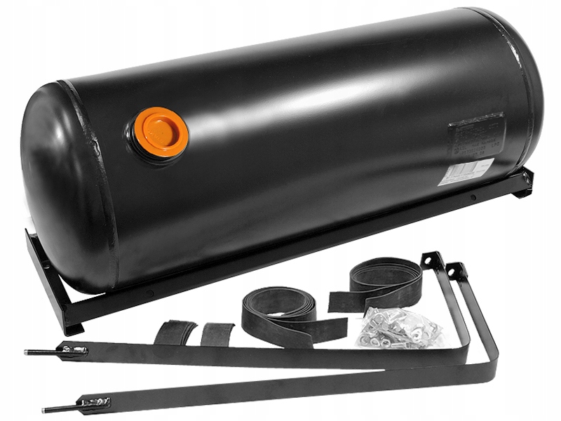 Składowy element instalacji gazowej. Zbiornik walcowy wykonany z materiałów wysokiej jakości, mocowany do ramki montażowej za pomocą opasek, przystosowany do współpracy z wielozaworami o kącie nachylenia 30 stopni.