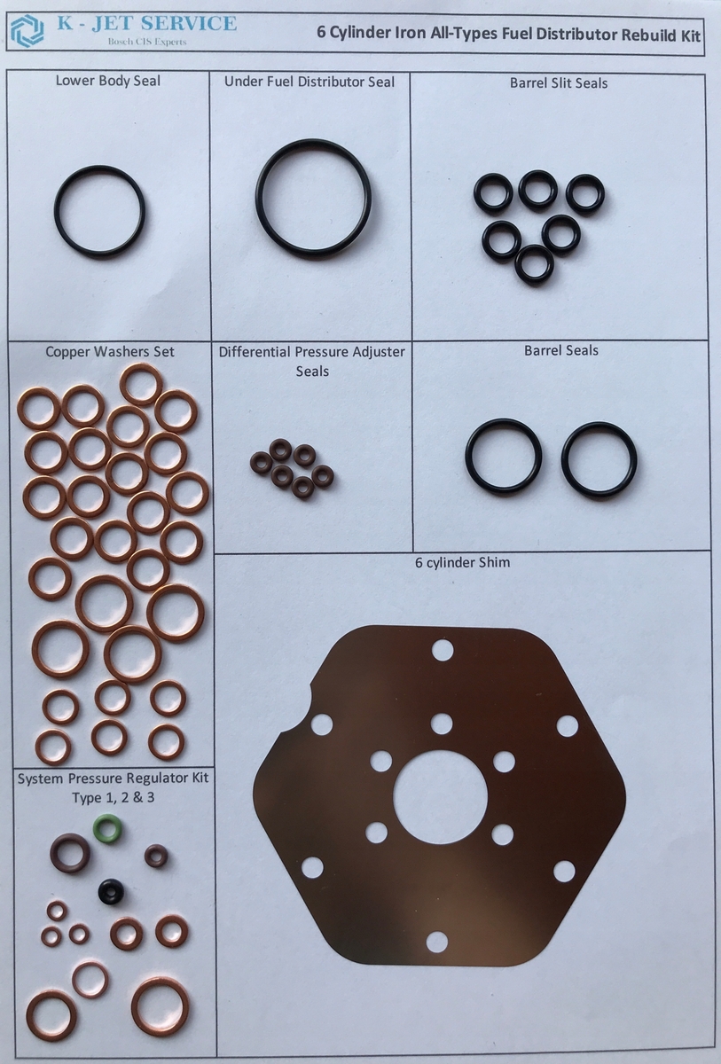 Zestaw naprawczy żeliwnego rozdzielacza paliwa Bosch 6 (lub 5) cylindrów