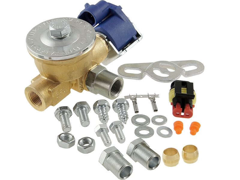 Element ten służy do kontrolowania przepływu gazu w fazie ciekłej do reduktora. Zawór posiada wbudowany i wymienny wkład, który zapewnia filtrację gazu. Elektrozawór gazowy posiada złącza M12x1.0 przystosowane do podłączenia przewodu zasilającego o średnicy 8mm lub odpowiednika.